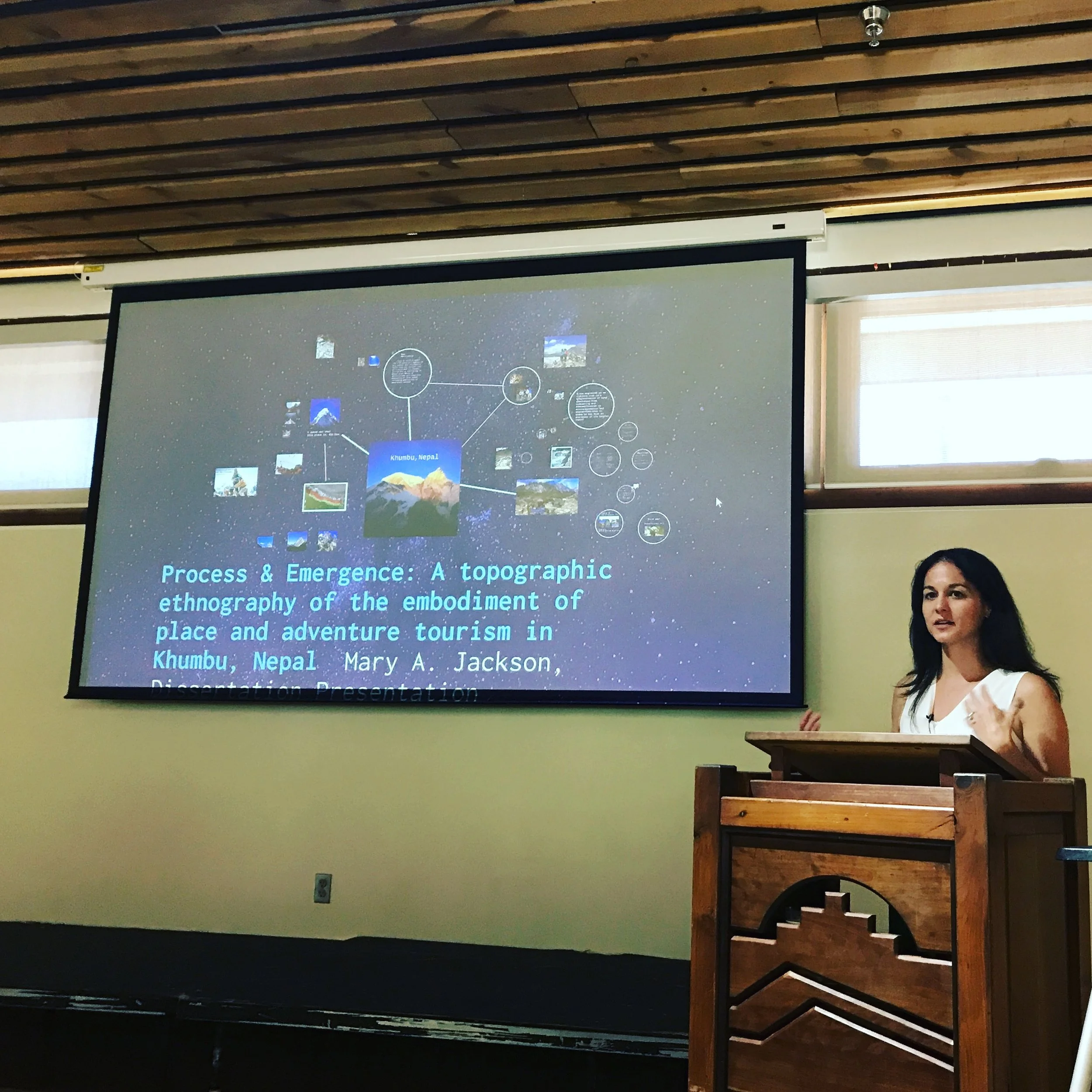 Today I saw Chomolungma (the mother goddess of the world), Mt Everest, for the first time in over five years. There “she” stood (somewhat tongue in cheek here), neither caring one way or another that a name of Everest is held by an idealistic and semiotic cultural presence (of the humans). What name does that mean to the mountain? Does it feel or know? It has shifted and changed its features—the very material that makes that mountain, has reconfigured because of the discursiveness of Everest (e.g., the avalanche last spring). I sit there staring at a mountain, not sure it should be called that. Chomolungma is the natureculture that brought me here initially, entangled in an adventure of cultural milieu. The entanglement is politics and power, gendered notions of a mother goddess of protection, of bucket lists, entitlement, of families struggling through poverty and death, and of globalization. This mountain, this Everest, is not inanimate, it has been determined and bound by the human and the culture, for better or for worse.”